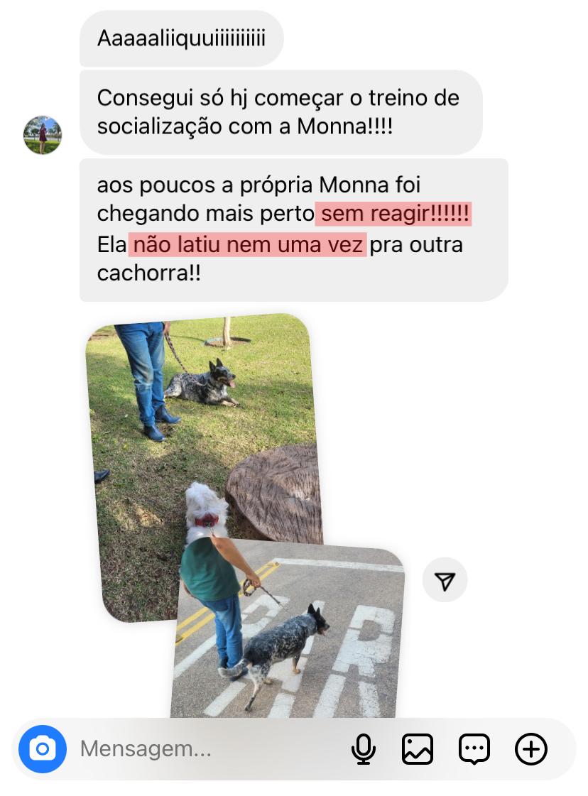 ÁLIQUI é especialista em comportamento canino, com mais de 10 anos de experiência em adestramento (tanto presencial quanto online).